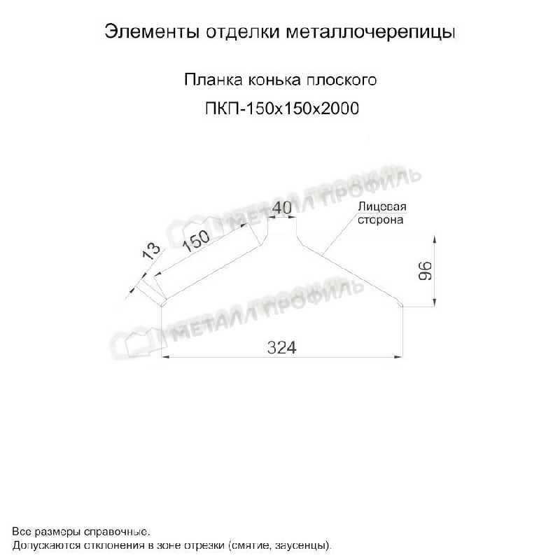 Планка конька плоского 150х150х2000 (PURMAN-20-Galmei-0.5)