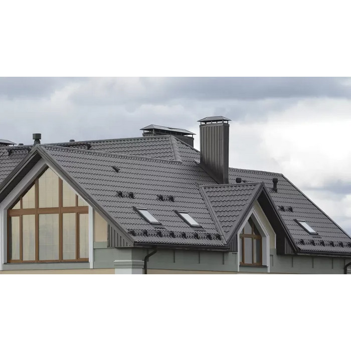 Необычный профиль новой металлочерепицы МОНТЕКРИСТО добавит вашему дому элегантную сдержанность и строгость. Добиться ещё большей индивидуальности вы сможете, самостоятельно выбрав глубину профиля (49/54/59 мм) и длину ступеньки (350/400 мм). На больших скатах будут гораздо эффектнее смотреться более крупные элементы черепицы с максимальными параметрами. Металлическая кровля с профилем МОНТЕКРИСТО имеет отличные технические характеристики, широкую гамму оттенков и полимерных покрытий. Оптимизированная форма бокового замка обеспечивает отвод влаги и водонепроницаемость кровли. Толщина стали не менее 0,5 мм и технология 3D-реза обеспечивают стабильную форму листов и маскируют горизонтальные соединения. Срок службы этого кровельного материала превышает 50 лет*.