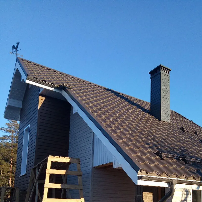 Стальная черепица МОНТЕРРОСА подходит для кровель в классическом и современном стиле. Глубина профиля доходит до 77 мм. Линии профиля скошенные, значит, в зависимости от угла обзора, внешний вид крыши отличается. С данной металлочерепицей крыша станет ещё заметнее. Выбирайте необходимую комбинацию длины (350 либо 400 мм) и высоты (25, 30 и 35 мм) ступеней, чтобы сделать нестандартную крышу, которая акцентирует оригинальность дома. Разработчики улучшили геометрию листа, оптимизировали рабочую площадь. МОНТЕРРОСА обрабатывается покрытиями классов Премьер и Премиум. Украсьте ваш дом эстетичной и выразительной крышей!
