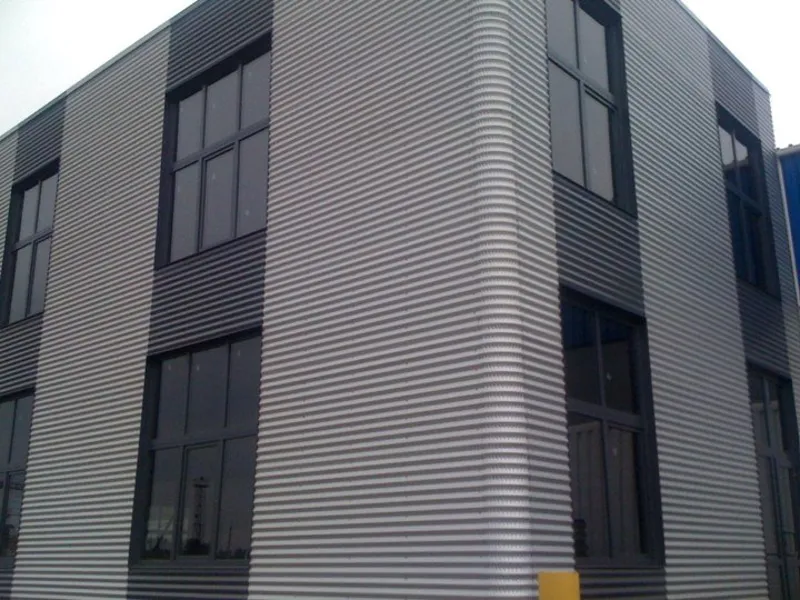 Оригинальный волнообразный профиль – в сравнении с остальными марками профнастила, он не имеет трапециевидных волн. Такая конфигурация и толщина металла от 0,45 до 0,7 мм делают этот стройматериал оптимальным вариантом для возведения заборов и отделки фасадов нежилых строений ( цеха, автосервисы, склады ). Профиль «Волна» гармонично сочетает в себе прочностные характеристики с эффектным обликом. В качестве исходного сырья для выпуска МП-18 выступает тонколистовая сталь промышленной оцинковки. Она легко выдерживает даже экстремальные климатические нагрузки: порывистый ветер, снег, солнечная радиация. А декоративно-протекторное полимерное покрытие дополнительно предотвращает корродирование и другие окислительные реакции. При сборке МП-18 используются специальные угловые элементы скруглённой конфигурации, которые дополняют облик всего здания и придают ему необычный вид.