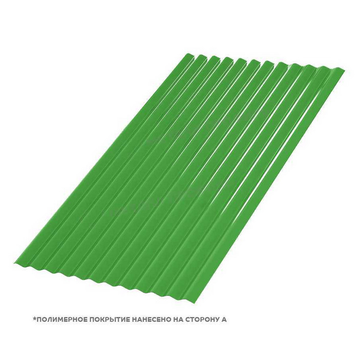 Профлист Металл Профиль МП-18 0,5 Полиэстер RAL 6018 Жёлто-зелёный применяется для обшивки крыш, фасадов зданий, заборов, а также в качестве материала для изготовления ворот, ограждений и других конструкций.