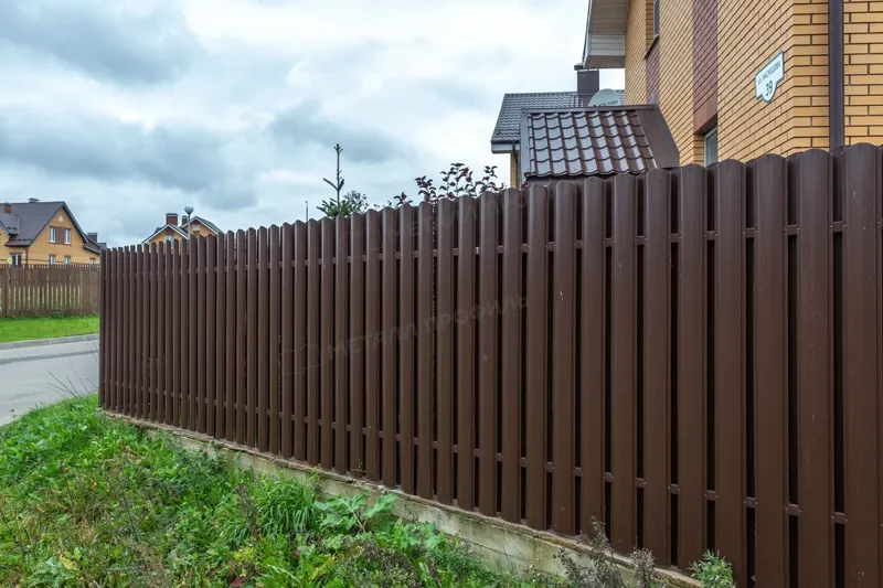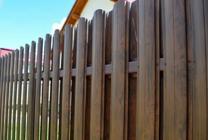 - Штакетник металлический МП ELLIPSE-O 19х126 (ПЭ-01-5005-0.45) похож на ограждение из дерева.
