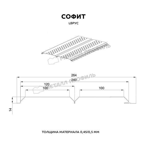 Софит МЕТАЛЛ ПРОФИЛЬ – это панели сайдинга Lбрус, на поверхности которых нанесены мелкие отверстия. Применяется для оформления фронтонных свесов. Софит МЕТАЛЛ ПРОФИЛЬ подчёркивает законченный и аккуратный вид здания. Отверстия в планках обеспечивают доступ воздуха в подкровельное пространство и предотвращают появление грибка, плесени, конденсата.
